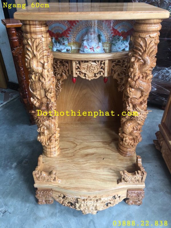 Án giang được biết đến là nơi mà con cháu thể hiện lòng thành của mình để tưởng nhớ về cội nguồn, những người đã khuất. Màu sắc của chất liệu gỗ kết hợp với độ bền không mối mọt hoàn toàn phù hợp để có thể lựa chọn làm bàn thờ cho các gia đình tạo được sự nghiêm trang cần có.