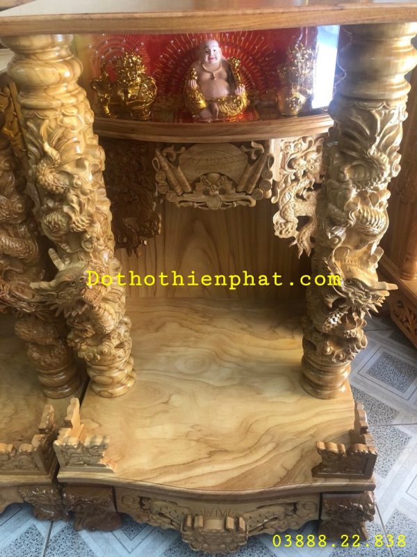 Rất nhiều không gian phòng thờ của các gia đình hay tại các chùa lớn nhỏ họ đều ưu tiên chọn gỗ gõ để làm bàn thờ. Thực sự điều này hoàn toàn không khó hiểu bởi gỗ gõ có bề mặt bóng bạn chỉ cần phủ một lớp sơn ta cũng đã khiến cho bàn thờ sử dụng có giá trị thẩm mỹ rất cao.
